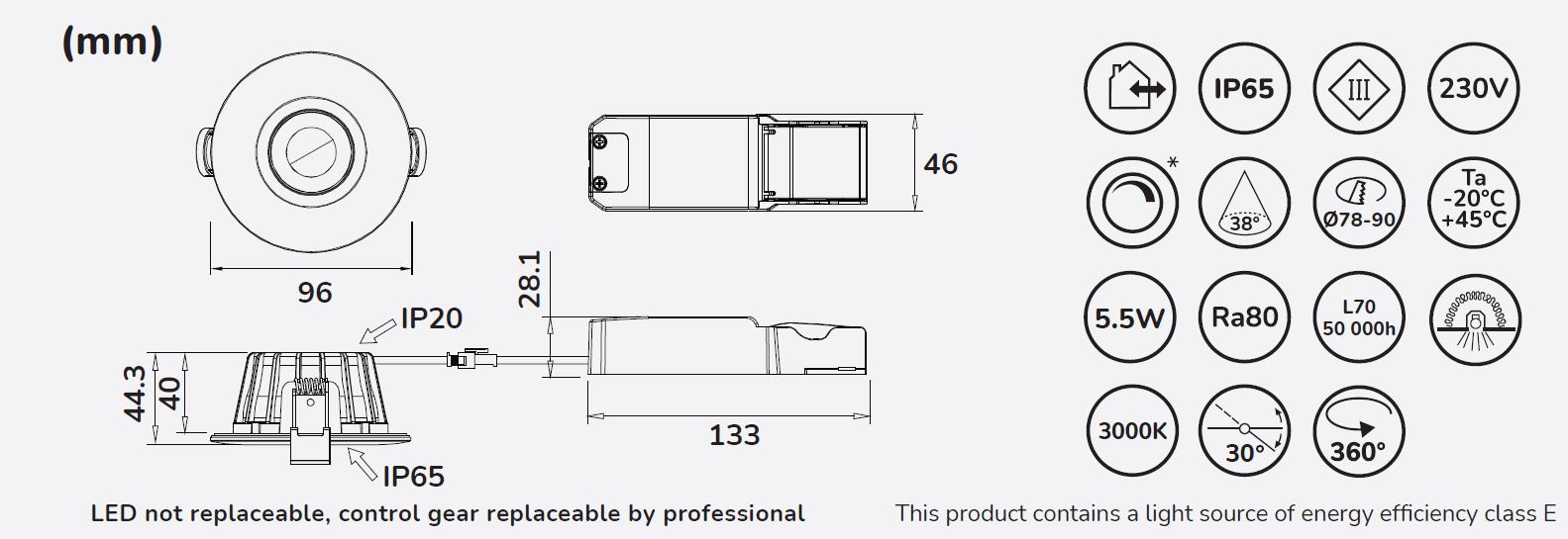 Lisa 230V 3000K Singel White