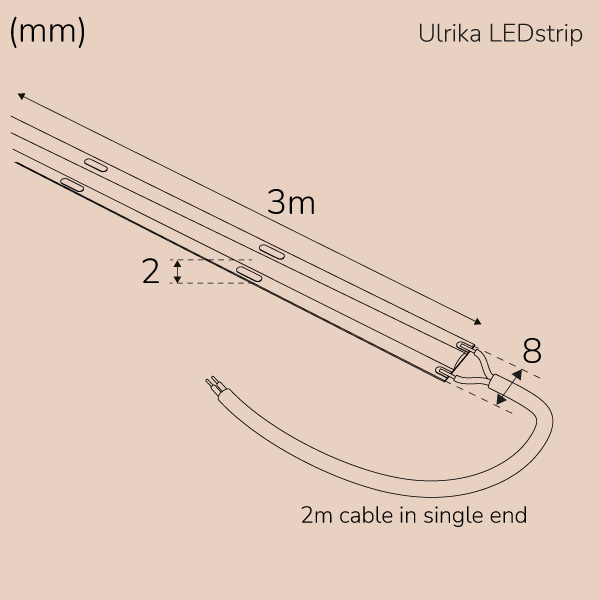 Ulrika LEDstrip är för dig som vill ha ett jämnt, linjärt och prickfritt ljus i form av LEDstrip som passar alla dina torra inomhusutrymmen.Ulrika LEDstrip kommer med lösa ändar för att kunna anpassa till valfri driver och installationssätt. Används med fördel tillsammans med vårt dimbara drivdon Lilly 24V Triac trafo. Ulrika LEDstrip är kapbar med ett avstånd på 50mm. Skarvas enkelt med hjälp av tillbehöret Ulrika & Louise Connectors